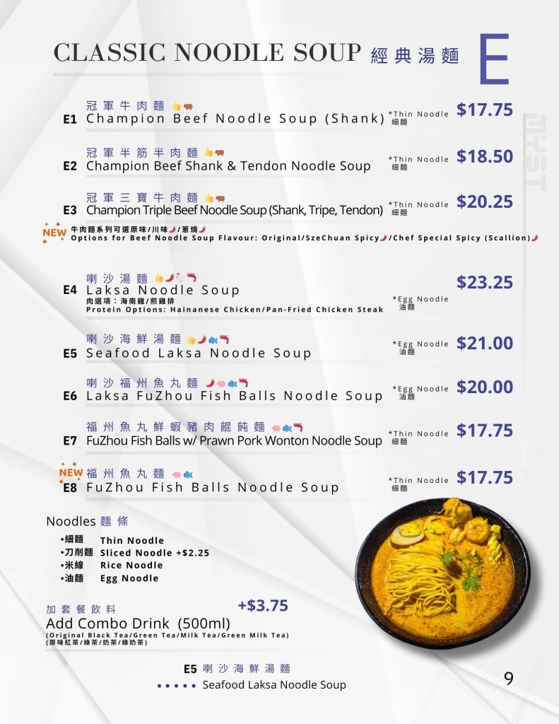 E01 冠軍牛肉麵 Champion Beef Noodle Soup (Shank)